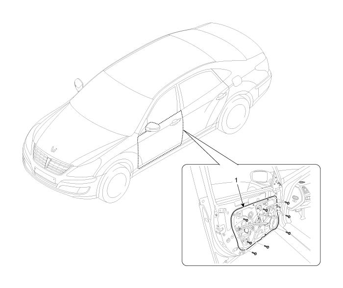Hyundai Equus: Front Door Module Components and Components Location - Front Door - Body (Interior and Exterior) - Hyundai Equus VI 2009-2025 Service ManualHyundai Equus: Front Door Module Components and Components Location
