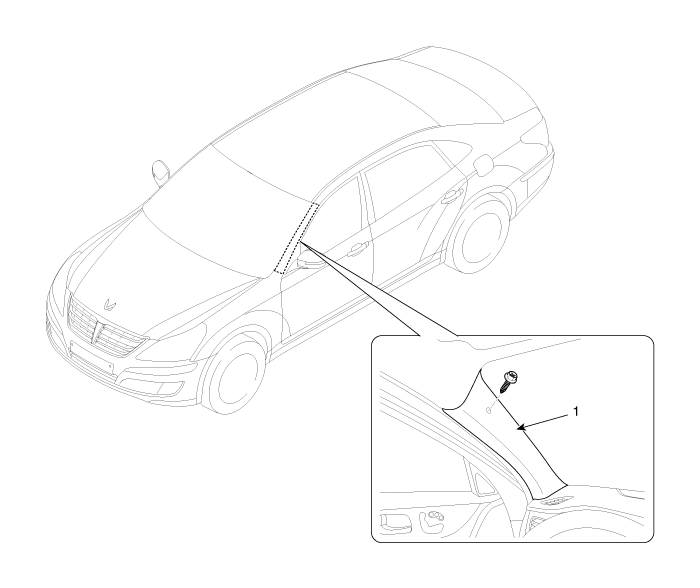 Hyundai Equus: Front Pillar Trim Components and Components Location - Interior Trim - Body (Interior and Exterior) - Hyundai Equus VI 2009-2025 Service ManualHyundai Equus: Front Pillar Trim Components and Components Location