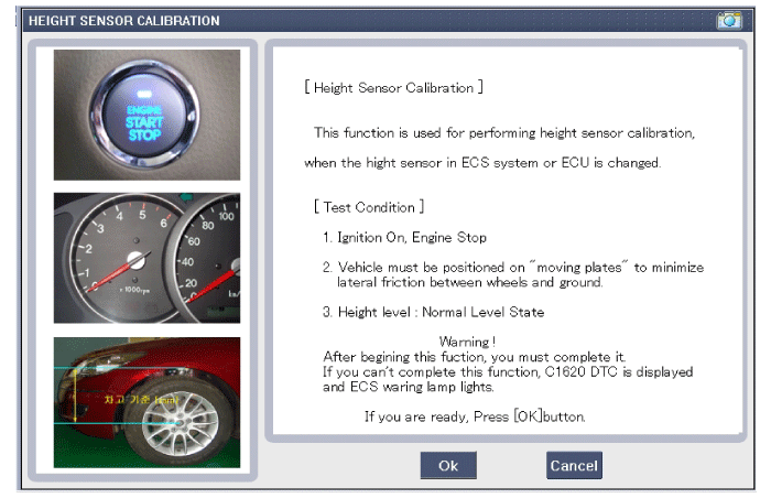 Select the "Vehicle Model" and "Initial Height Sensor Screen" on GDS vehicle selection screen, then select OK.