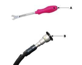 Disconnect the negative terminal (A) from the battery.