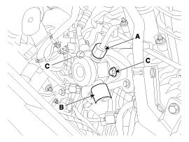 Remove the installation bolts (C), and then remove the high pressure fuel pump from the cylinder head assembly.