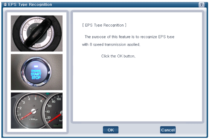 2. Be careful not to disconnect any cables connected to the vehicle or scan tool during EHPS type recognition |