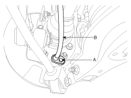While pressing the spring, install the brake shoe hold down pin (A) and spring (B).