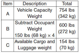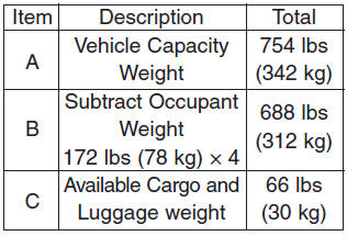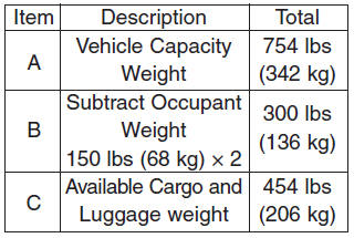 The combined weight of the driver, passengers and cargo should never exceed your vehicle's capacity weight.