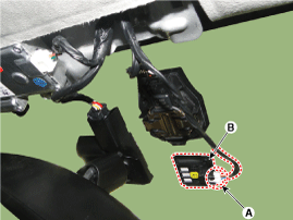 Disconnect the connector (A) and then remove the auto defogging sensor (B).