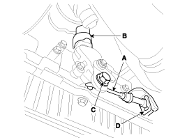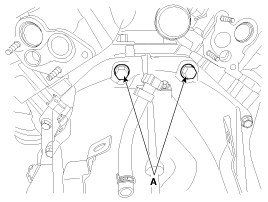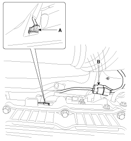 Disconnect the solenoid valve connector (A) and the oxygen sensor connector (B).
