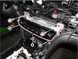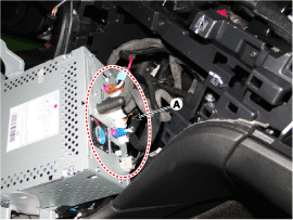 Remove the AVN head unit (A) after loosening the mounting bolts and nuts.