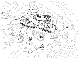 Remove the ECM & TCM bracket installation bolts (C) and nut (D). |
