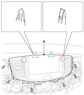 Using a screwdriver or remover, remove the center fascia upper panel (A).