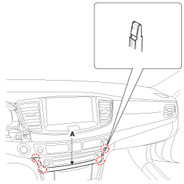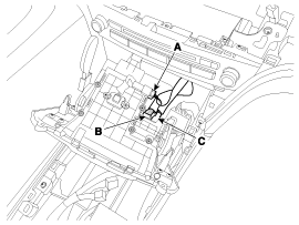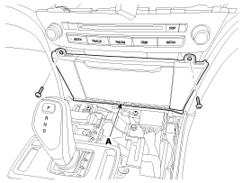 Loosen the mounting screws, remove the center fascia complete lower panel (A).