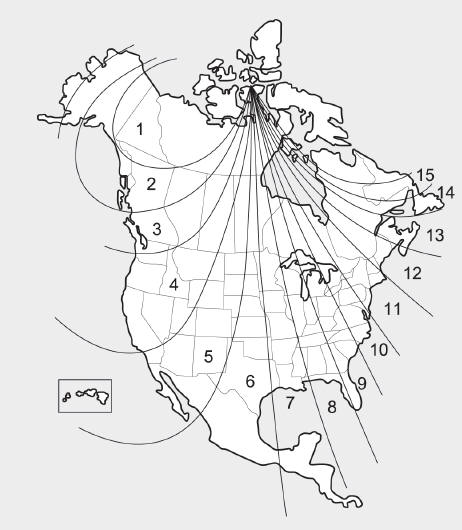 There is a difference between magnetic north and true north. The compass in the mirror can compensate for this difference when it knows the Magnetic Zone in which it is operating. This is set either by the dealer or by the user. The operating Zone Numbers for North America are shown in the figure on the following section.