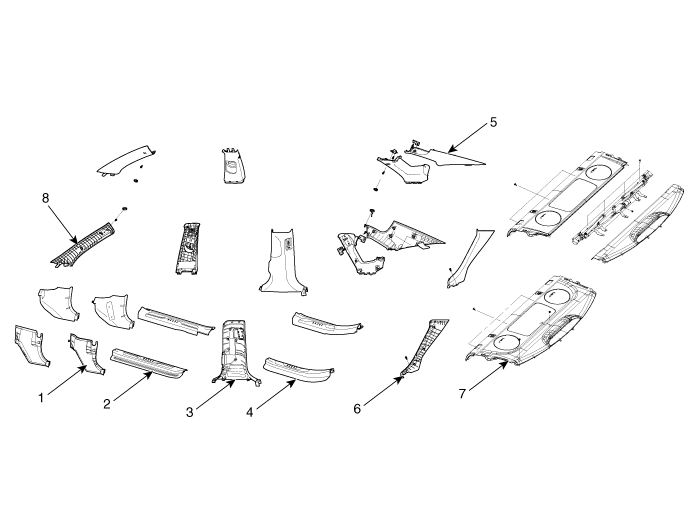 Component Location 1. Front door scuff trim2. Rear door scuff trim ...