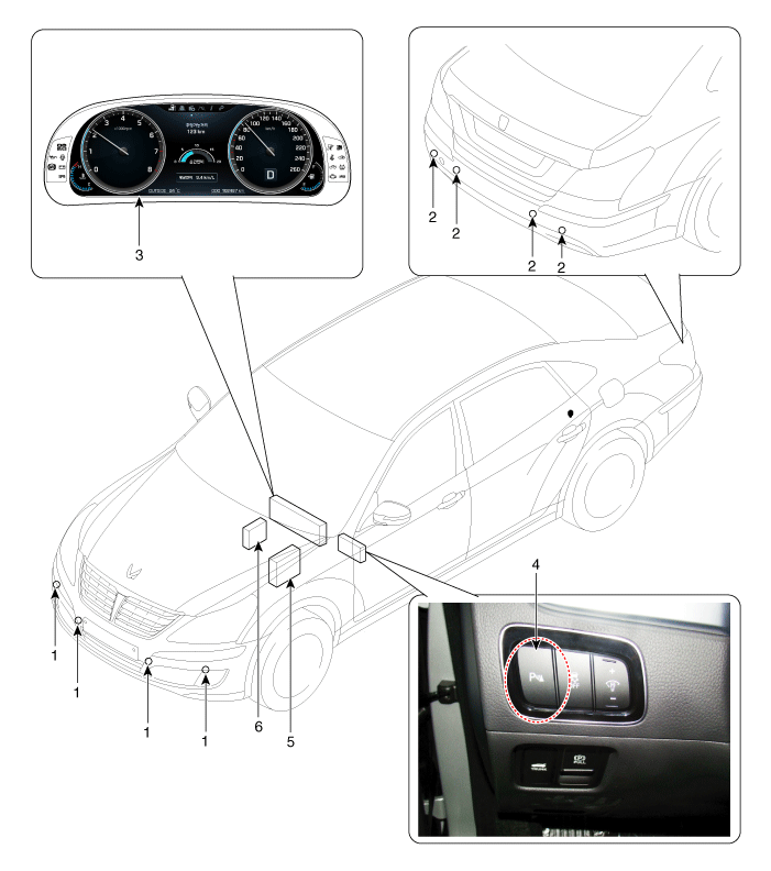 Hyundai Equus: Components and Components Location - Front / Rear Parking Assist System - Body Electrical System - Hyundai Equus VI 2009-2025 Service ManualHyundai Equus: Components and Components Location