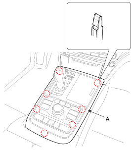 Using a screwdriver or remover, remove the front console upper complete (A).
