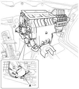 Disconnect the connector (A) and then remove the console temperature control actuator (B) after loosening the mounting screws.