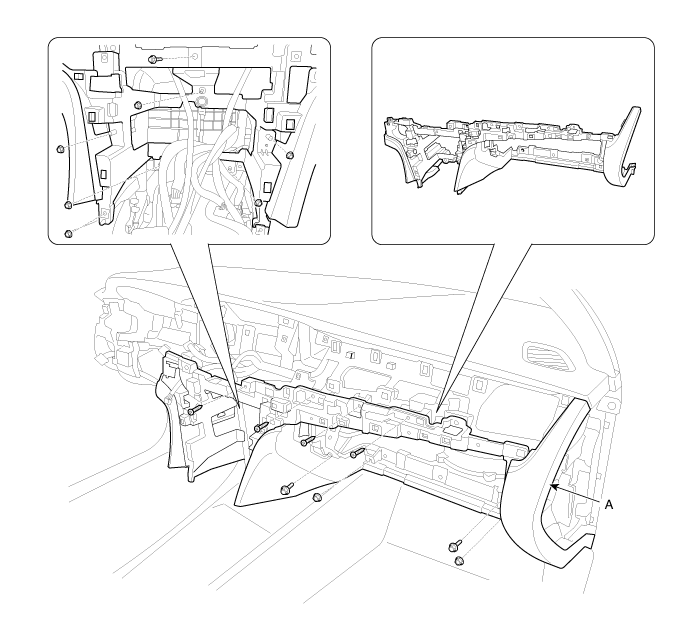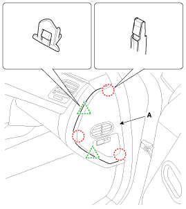 Using a screwdriver or remover, remove the crash pad side cover [RH] (A).