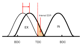 By controlling CVVT, the valve over-lap or under-lap occurs, which makes better fuel economy and reduces exhaust gases (NOx, HC). CVVT improves engine performance through reduction of pump loss, internal EGR effect, improvement of combustion stability, improvement of volumetric efficiency, and increase of expansion work.