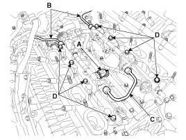 Remove the installation bolt (D), and then remove the delivery pipe and injector assembly from the engine.