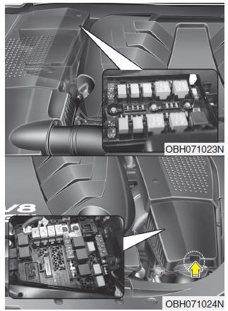 After checking the fuse panel in the engine compartment, securely install the fuse panel cover. If not, electrical failures may occur from water contact.