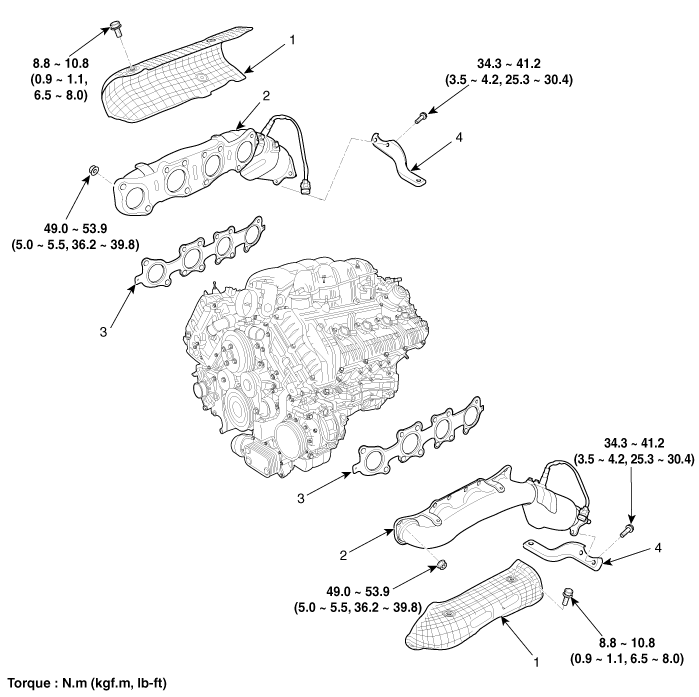 Hyundai Equus: Exhaust Manifold Components and Components Location - Intake And Exhaust System - Engine Mechanical System - Hyundai Equus VI 2009-2025 Service ManualHyundai Equus: Exhaust Manifold Components and Components Location
