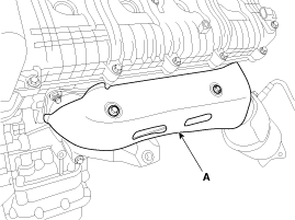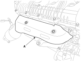 Remove the LH/RH exhaust manifold heat protectors (A).