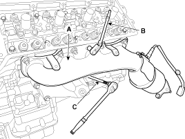 Remove the LH/RH exhaust manifolds (A).