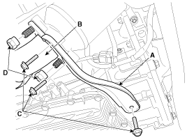 Remove the exhaust manifold stay (A) and then disconnect the front muffler (B) on LH and RH side.