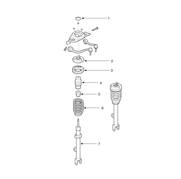 Hyundai Equus: Front Air Strut Assembly Components and Components Location - Air Suspension System - Suspension System - Hyundai Equus VI 2009-2025 Service ManualHyundai Equus: Front Air Strut Assembly Components and Components Location