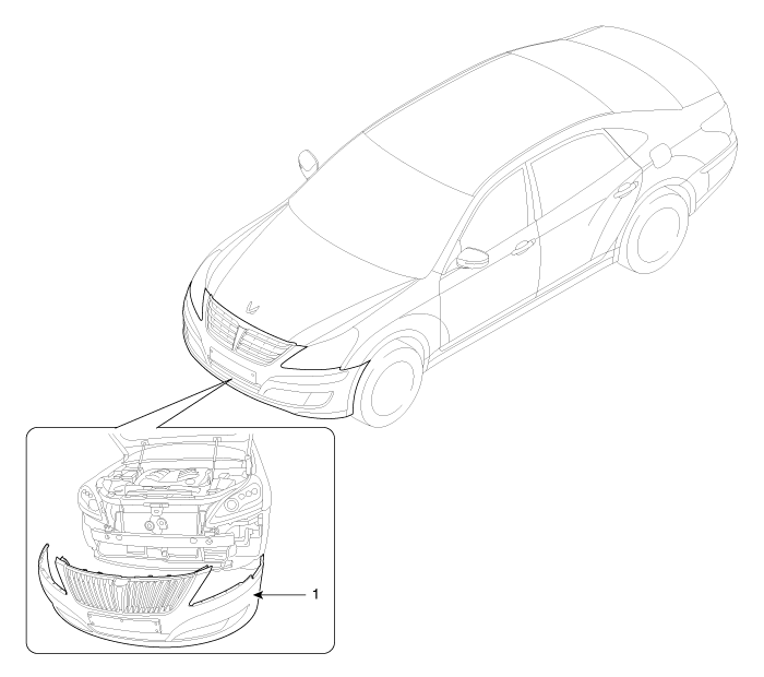 Hyundai Equus: Front Bumper Cover Components and Components Location - Front Bumper - Body (Interior and Exterior) - Hyundai Equus VI 2009-2025 Service ManualHyundai Equus: Front Bumper Cover Components and Components Location