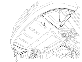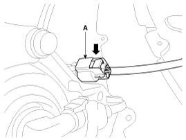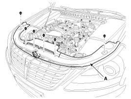 After loosening the mounting clips, then remove the engine room side cover (A).