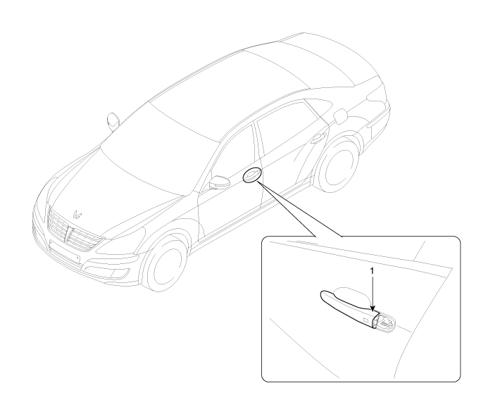Hyundai Equus: Front Door Outside Handle Components and Components Location - Front Door - Body (Interior and Exterior) - Hyundai Equus VI 2009-2025 Service ManualHyundai Equus: Front Door Outside Handle Components and Components Location
