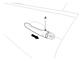Remove the front door outside handle (A) by sliding it rearward.