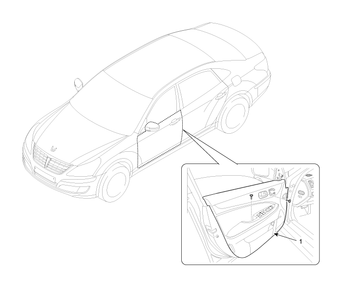 Hyundai Equus: Front Door Trim Components and Components Location - Front Door - Body (Interior and Exterior) - Hyundai Equus VI 2009-2025 Service ManualHyundai Equus: Front Door Trim Components and Components Location
