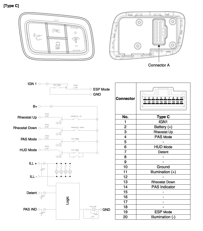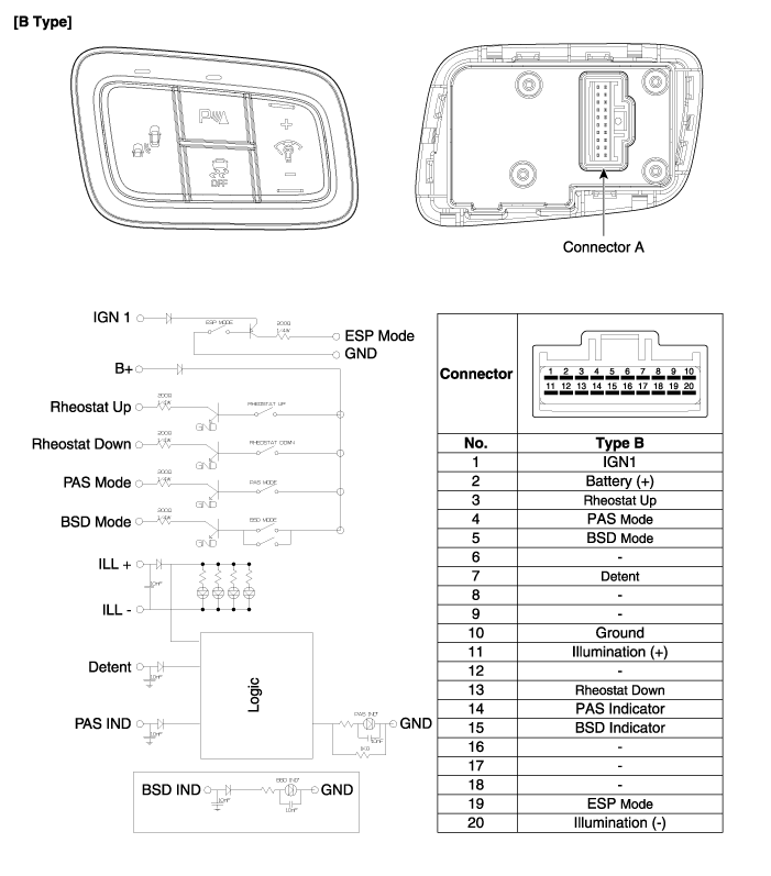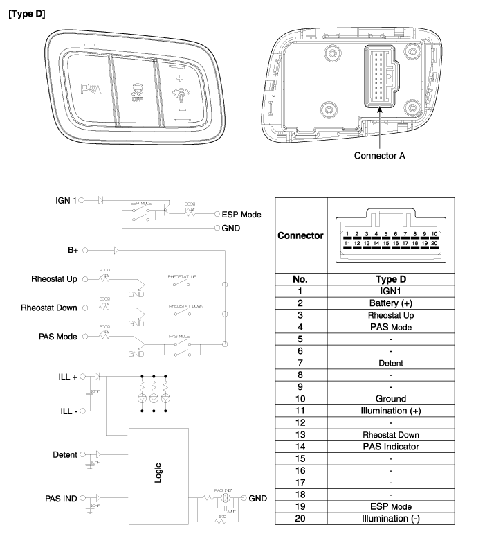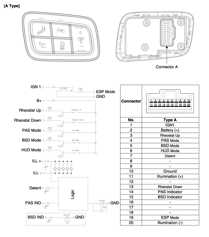 Hyundai Equus: Front Rear Parking Assist System Switch Components and Components Location