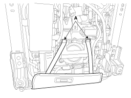 Using a screwdriver or remover, remove the front seat front shield outer cover (A).