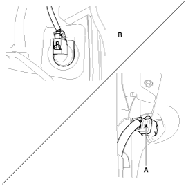 Remove the washer hose and the washer motor connector (A) and the washer fluid level sensor connector (B).