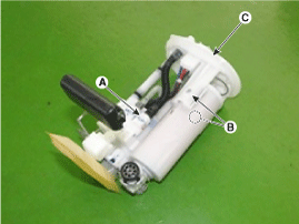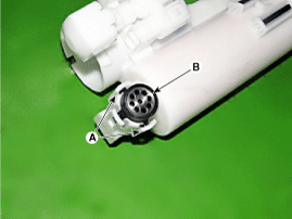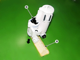 Release the fixing hook, and then remove the free filter (A) and fuel pump motor (B).
