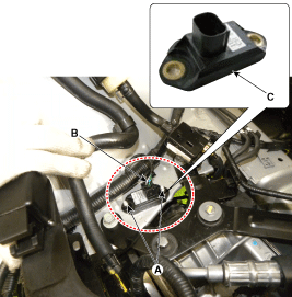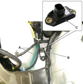 Disconnect the connector (B) and nut (A-2ea) remove the G-sensor (C).