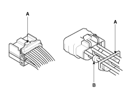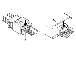 Before connecting connectors, make sure the terminals (A) are in place and not bent.