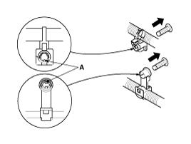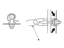 Slip pliers (A) under the clip base and through the hole at an angle, and then squeeze the expansion tabs to release the clip.