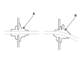 Seat grommets in their grooves properly (A). Do not leave grommets distorted (B).