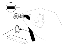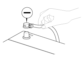 Be sure to disconnect the battery cable from the negative (-) terminal of the battery.