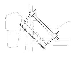 These dimensions indicate the actual linear distance between measurement points, and are used as the reference dimensions when a tracking gauge is used for measurement.