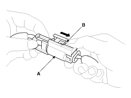 Insert a thin stick (A) into the PCV valve (B) from the threaded side to check that the plunger moves ...