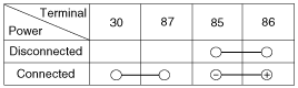 There should be no continuity between the No.87 and No.30 terminals when power is disconnected.