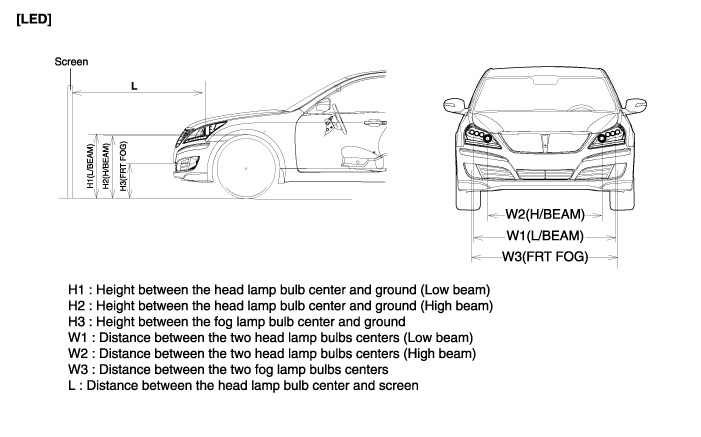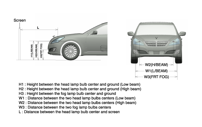 The front fog lamps should be aimed as the same manner of the head lamps aiming.