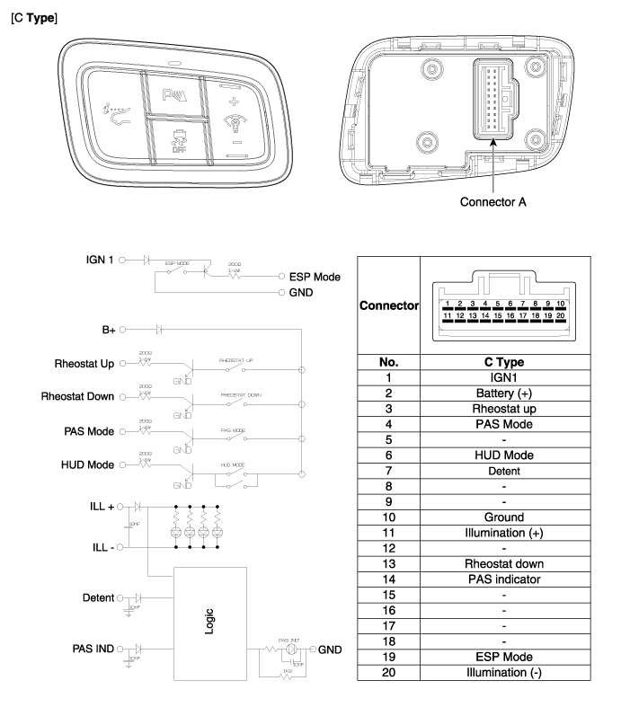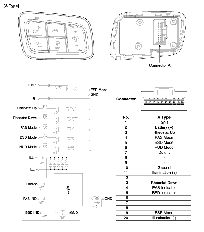 Hyundai Equus: Head Up Display Switch Components and Components Location