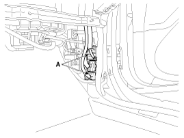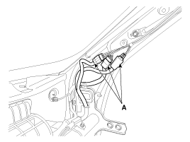 Disconnect the connectors (A) and the mounting clips in the front pillar.