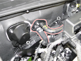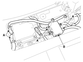 Disconnect the inlet (A) and outlet (B) heater hoses from the heater unit.