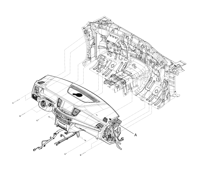 After loosening the nuts and bolts remove the main crash pad (A) and cowl cross bar assembly (A) together.